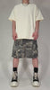 本格派のリアルツリー柄をベースに、サイドカーゴ×切り替えパターンで構成した機能性重視のショーツ。生地にはしっかりとした厚みのあるコットンツイルを採用し、程よくウォッシュ加工されたことで柔らかな履き心地とヴィンテージ感を両立。ウエストはアジャスターバックルで微調整可能、ベルトいらずの快適仕様。カーゴポケットは面ファスナーでフラップ付き。アウトドアテイストを活かしつつ、街着に馴染むモダンな設計がポイント。オーバーサイズのTシャツや無地タンク、ミリタリーシャツとの相性は抜群。サンダルやハイカットスニーカーでストリートに寄せても◎。フェス、アウトドア、シティユース、どこでも使える一本です。