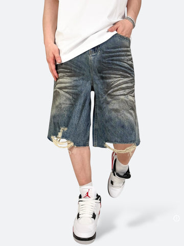 フロントのスモークウォッシュ加工が視線を引きつける一方で、バックデザインにはこだわりの再構築ディテールを採用。ウエスト部分のセンターラインを一度カットし、左右を段違いに縫い合わせたような切り替え構造が、後ろ姿に立体感と独自の存在感を生み出しています。さらに、角度をつけた大きめのヒップポケットが配置され、視覚的な動きと実用性の両方を確保。ディテールが際立つことで、シンプルなTシャツスタイルでも抜群の主役感を発揮します。裾は断ち切り仕様+程よいクラッシュ加工で、使い込んだようなヴィンテージ感を演出。丈は膝にかかるロークロップシルエット。ルーズな着こなしにハマりやすく、ストリートファッションやスケータースタイルとも好相性。シンプルなトップスと合わせるだけで、一歩先のストリートが完成します。 |