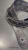 ●オーバルモチーフのスタッズワークとブラックストーンをベルト全体に落とし込み、オールブラックでまとめた存在感のあるデザイン