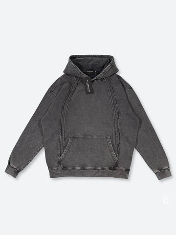 アイテム説明 400gコットンを使用したワイドシルエットのスウェットパンツ。全体にフェード加工を施し、グレーベースながらムラ感のある色味が特徴。サイドにはカーブを効かせた切り替えステッチを配置し、ボリュームのあるシルエットに立体的な影とラインを加えた構造に仕上がっています。裾はわずかにフレアを残した溜まりやすい落ち感で、スニーカーやボリュームブーツとも好相性。ウエストはゴム+ドローコード仕様で、タイトすぎず自然にフィット。過度な伸縮はないですが、ウエスト位置でしっかり止まる安定感のある穿き心地。フーディやスウェットとの相性も高く、同素材・同カラーのパーカーと合わせれば、セットアップライクな着こなしも可能です。上下揃えてストリート寄りに振るのも、パンツ単体でロング丈のトップスと合わせてレイヤードを楽しむのもアリ。普段着、移動着やちょっとした外出まで、力まず着られて形は決まる日常で使いやすいスウェットパンツです。